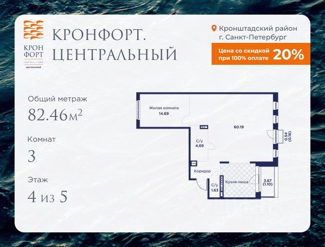Предлагается квартира площадью 82.46 кв.м в жилом комплексе "Кронфорт. Центральный" в Санкт-Петербурге (Кронштадт). Возможна покупка с использованием льготных и специальных ипотечных программ с государственной поддержкой.