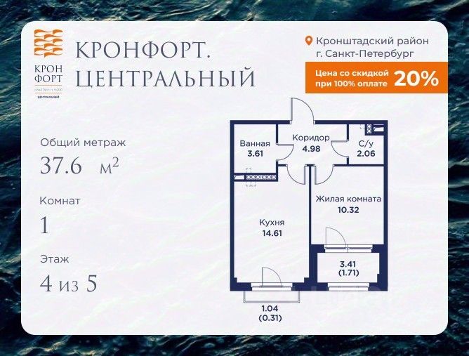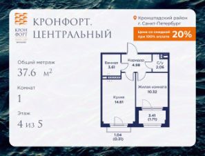 Предлагается квартира площадью 37.6 кв.м в жилом комплексе "Кронфорт. Центральный" в Санкт-Петербурге (Кронштадт). Возможна покупка с использованием льготных и специальных ипотечных программ с государственной поддержкой.
