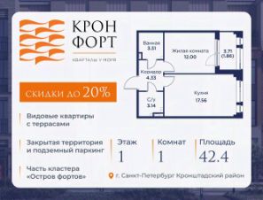 Предлагается квартира площадью 42.4 кв.м в жилом комплексе "Кронфорт. Центральный" в Санкт-Петербурге (Кронштадт). Возможна покупка с использованием льготных и специальных ипотечных программ с государственной поддержкой.