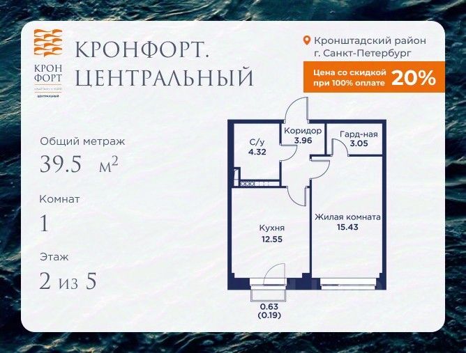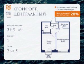 Предлагается квартира площадью 39.5 кв.м в жилом комплексе "Кронфорт. Центральный" в Санкт-Петербурге (Кронштадт). Возможна покупка с использованием льготных и специальных ипотечных программ с государственной поддержкой.