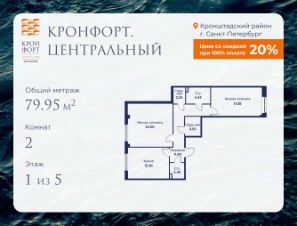 Предлагается квартира площадью 79.95 кв.м в жилом комплексе "Кронфорт. Центральный" в Санкт-Петербурге (Кронштадт). Возможна покупка с использованием льготных и специальных ипотечных программ с государственной поддержкой.