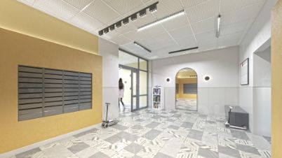Здесь вы найдете полноценное место для отдыха и мероприятий с ярусными скамейками и большой елью, несколько детских площадок и спортивный кластер с баскетбольной и волейбольной площадками, воркауттренажерами и лужайкой для йоги. Паркбульвар станет настоящим хабом для пешеходов — дорожки к популярным точкам инфраструктуры будут переплетаться с основной транзитной дорогой с асфальтовым и набивным покрытием, по которой будет удобно идти, бежать или ехать на самокате.