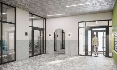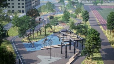 Здесь вы найдете полноценное место для отдыха и мероприятий с ярусными скамейками и большой елью, несколько детских площадок и спортивный кластер с баскетбольной и волейбольной площадками, воркауттренажерами и лужайкой для йоги. Паркбульвар станет настоящим хабом для пешеходов — дорожки к популярным точкам инфраструктуры будут переплетаться с основной транзитной дорогой с асфальтовым и набивным покрытием, по которой будет удобно идти, бежать или ехать на самокате.