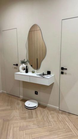 Квартира оформлена с использованием экологически чистых материалов в современном стиле.