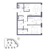 3-х комнатная квартира с двумя спальнями и кухней-гостиной.