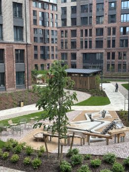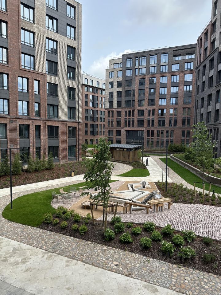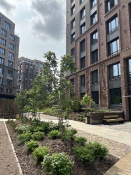 Территория комплекса благоустроена, дворы закрыты и безопасны: установлено современное оборудование и тематические зоны для детей разных возрастов, велодорожки, батуты, площадка для игры с водой.