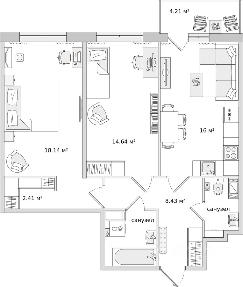 При покупке квартиры без участия агентов дарим сертификат новосела в магазин HOFF на сумму 50 000 рублей. Им можно оплатить не более 15% от суммы покупки.