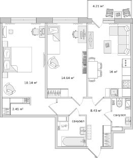 Продаётся двухкомнатная квартира в жилом комплексе ЦДС "Чёрная Речка", Корпус 3Номер квартиры — 94.