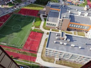 - во дворе новая современная школа с бассейном, футбольным полем (в этом году запускается еще одна школа рядок), детские сады, поликлиника