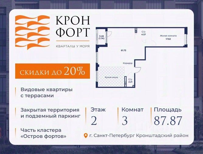 Предлагается квартира площадью 87.87 кв.м в жилом комплексе "Кронфорт. Центральный" в Санкт-Петербурге (Кронштадт). Возможна покупка с использованием льготных и специальных ипотечных программ с государственной поддержкой.