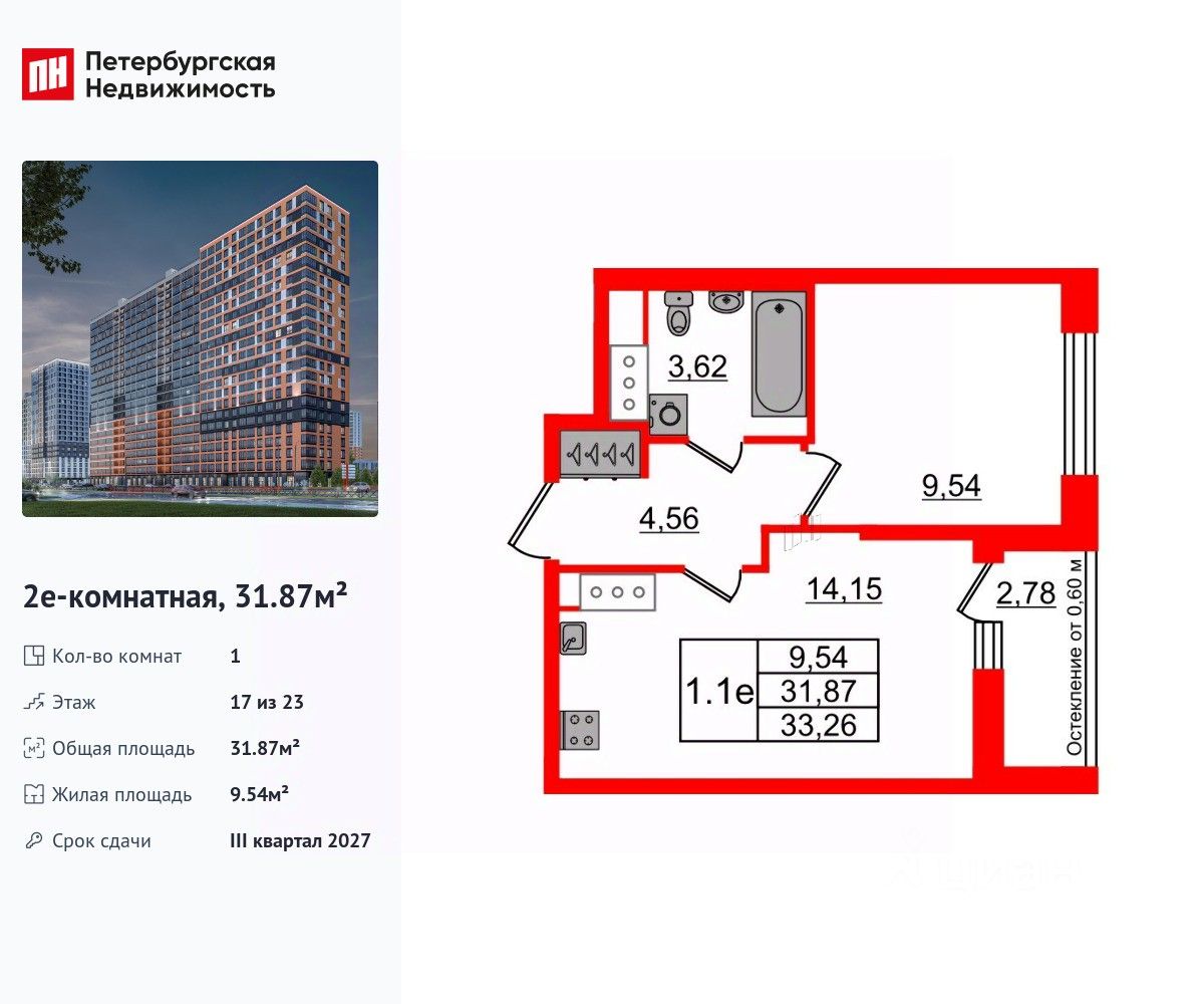 Удобная, классическая, функциональная европланировка, большая кухня-гостиная 14.15 м², просторная прихожая 4.56 м². Общая площадь квартиры - 31.87 м², жилая 9.54 м², высота потолка 2.77 м.