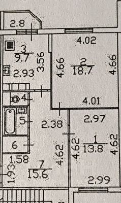 2 большие изолированные комнаты площадью 18,7 и 13,8 кв.м, кухня 9,7 кв.м., лоджия 2,8 кв.м, имеется вместительная кладовая 6 кв.м. Раздельный сан узел. Просторный коридор 15,6 кв.м.