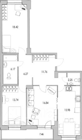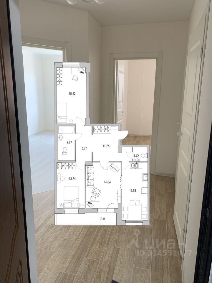 Квартира с чистовой отделкой (под ключ), с большой кухней-гостиной 16 м2, которую можно объединить с соседней комнатой.