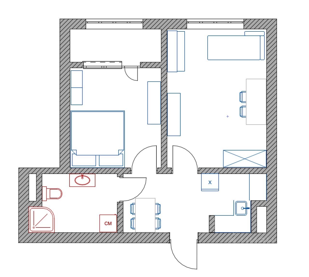 4.Кухня совмещена с прихожей. Переноса не было, при желании можно убрать и вернуть хозяйственную зону.