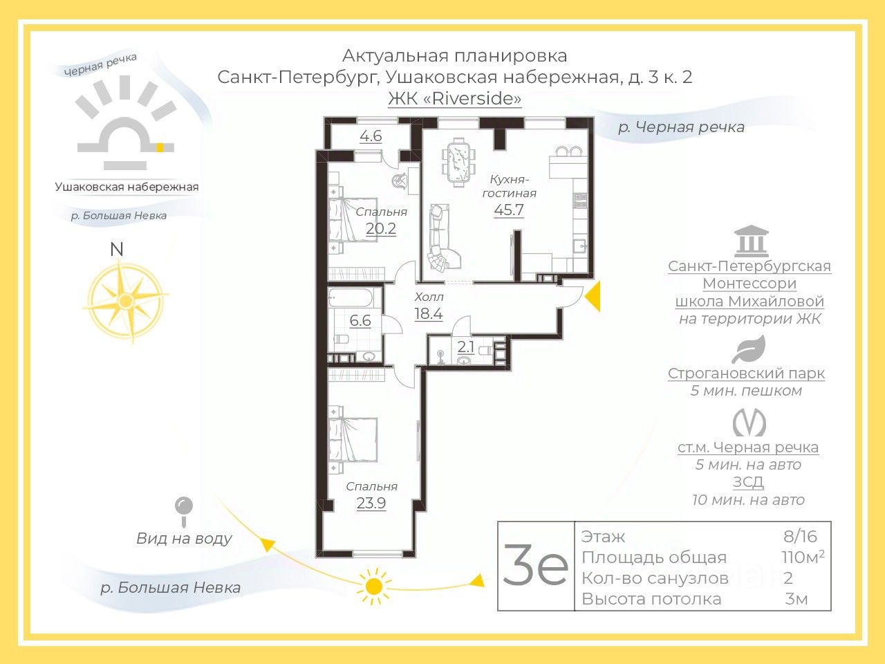 Предлагается 3-комнатная квартира в современном жилом комплексе "Риверсайд".