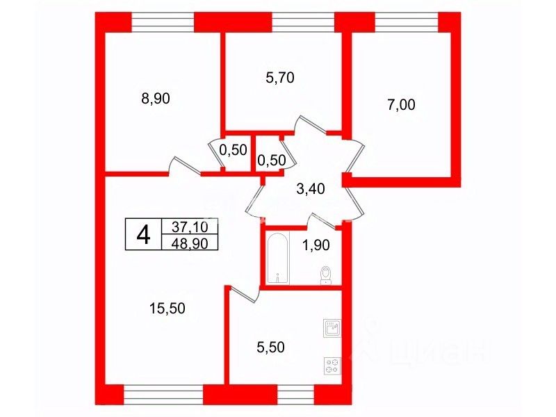 48,9 м²