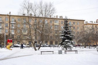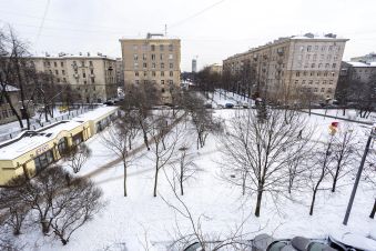 В то же время дом расположен в тихом зелёном дворе, закрытом со всех сторон домами от проезжей части, благодаря чему во дворе и в самой квартире тихо.