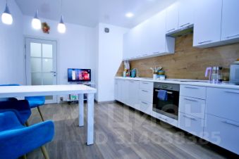 Кухня отделена от спален гостиной комнатой и двумя коридорами, оборудована всей необходимой техникой - плита стеклокерамика с духовым шкафом, вытяжка вентиляции, посудомоечная машина, холодильник.