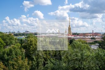 Просторная квартира общей площадью 330 кв.м. с грамотным зонированием пространства. Каждая комната изолирована и имеет гардеробную зону. Также интересная особенность - круглая гостиная для уютных вечеров в кругу близких с действующим камином и удобным выходом на кухню. Кухня площадью 40 кв.м. оборудована техникой Miele и удобным островом, где утром можно пить кофе и любоваться панорамным видом на город, а также ужинать с видом на Петропавловскую крепость.