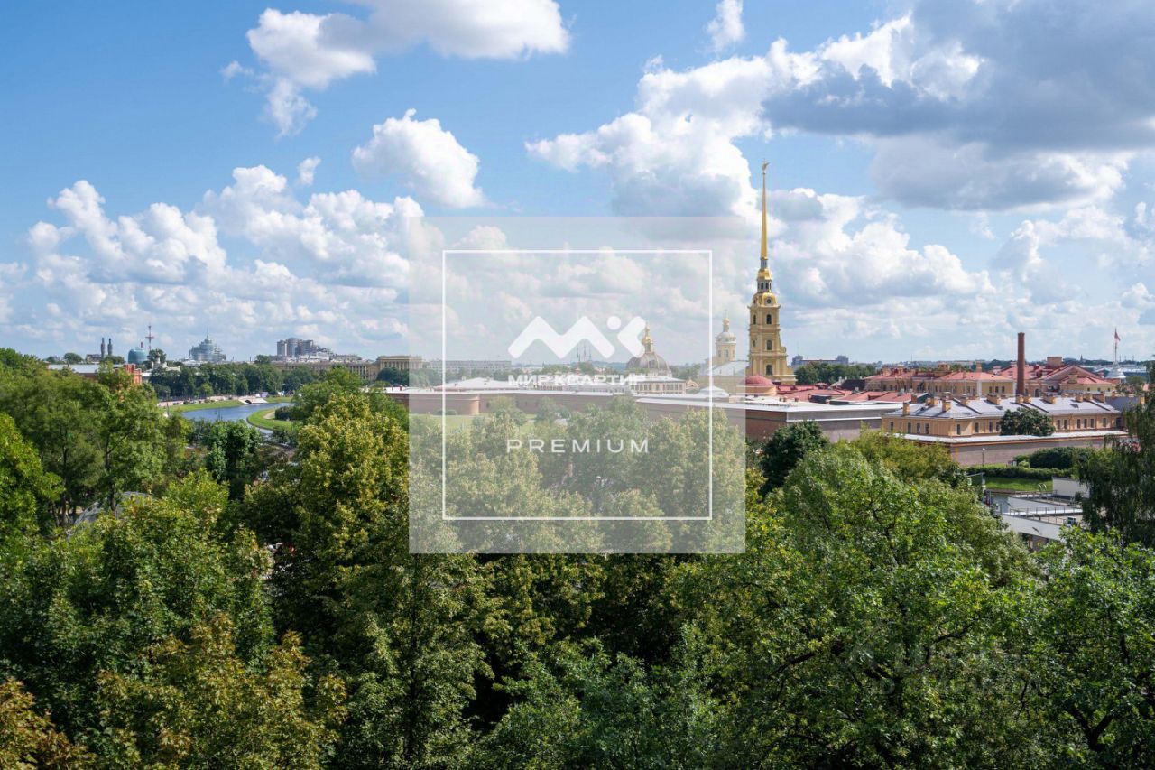 Квартира двусторонняя с большим количеством окон, 13 из которых выходит на фасад. Также есть балкон, выйдя на который, открывается вид на Эрмитаж. Видовые характеристики этой квартиры заслуживают отдельного внимания.