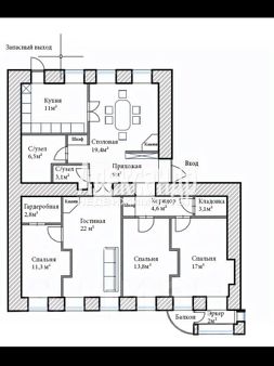 Три спальни — 11,3 кв.м., 13,8 кв.м., 17 кв.м.;