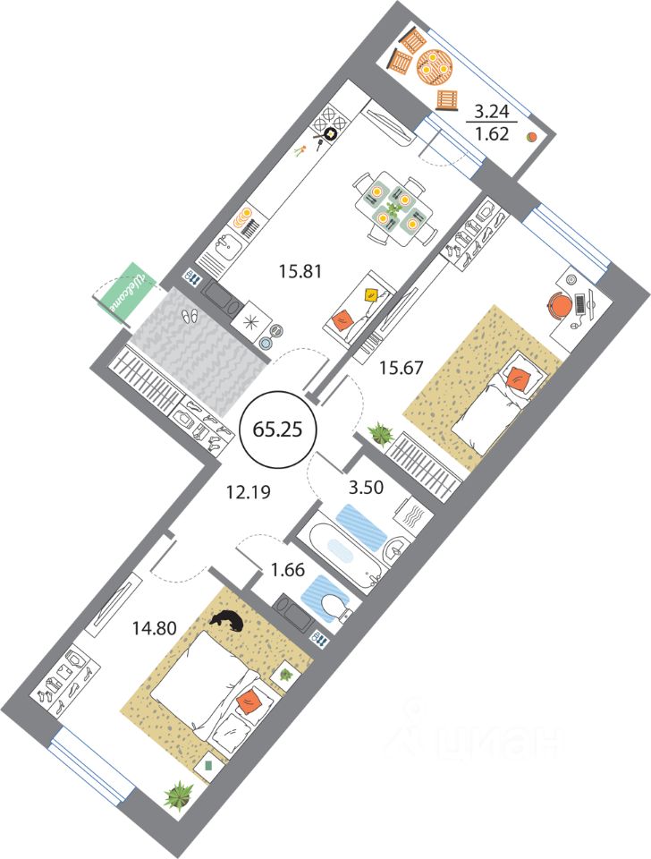 Продаётся e3 комнатная квартира (евро) в жилищном комплексе Modum (Корпус 2 секция 5). Общая площадь 65.25 кв. м, площадь комнат 14.8+15.67 кв.м. раздельный санузел. Квартира расположена на 9 этаже 12 этажного дома. Сдается с отделкой White-box.