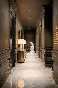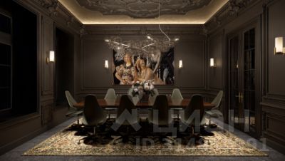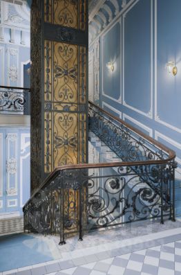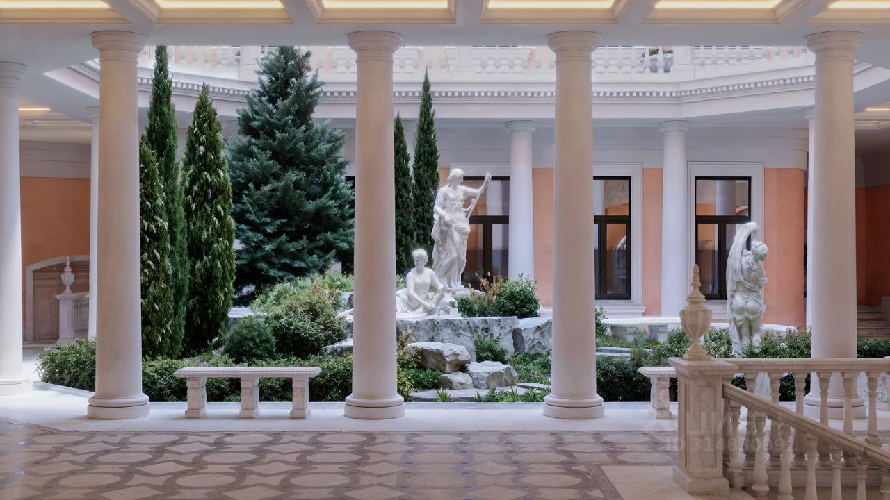 Планировка квартиры предусматривает два входа, просторную видовую гостиную, парадную столовую, функциональную кухню, кабинет, спальни с приватными ванными и гардеробными, хозяйственные помещения. Высокие арочные оконные проемы наполняют пространство воздухом и естественным светом, подчеркивая исторический статус здания. Высокие потолки.