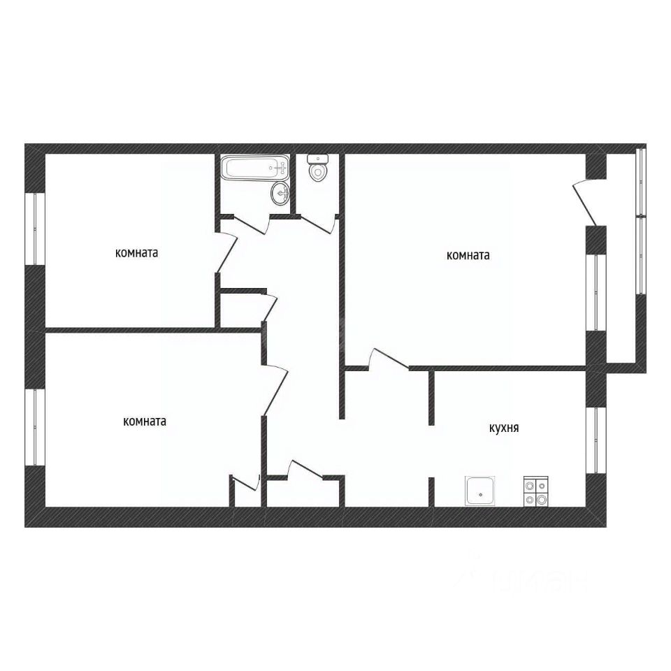 Квартира очень теплая, с просторными изолированными комнатами площадью 16,8, 12,8 и 11, 3 кв.м и большой кухней!