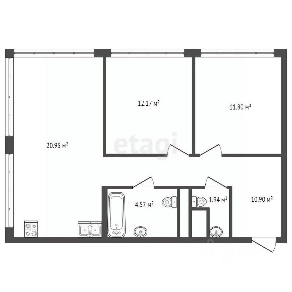- Кухня: 20.95 м² — просторная гостиная с зоной готовки для большой и дружной семьи.