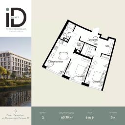 Общая площадь60,79 м²