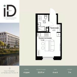Общая площадь22,01 м²