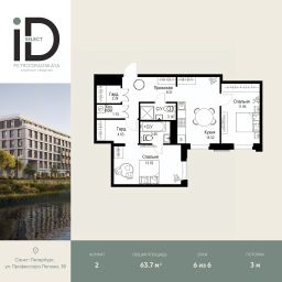 Общая площадь63,7 м²