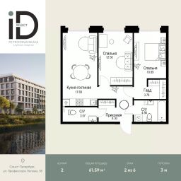 Общая площадь61,59 м²