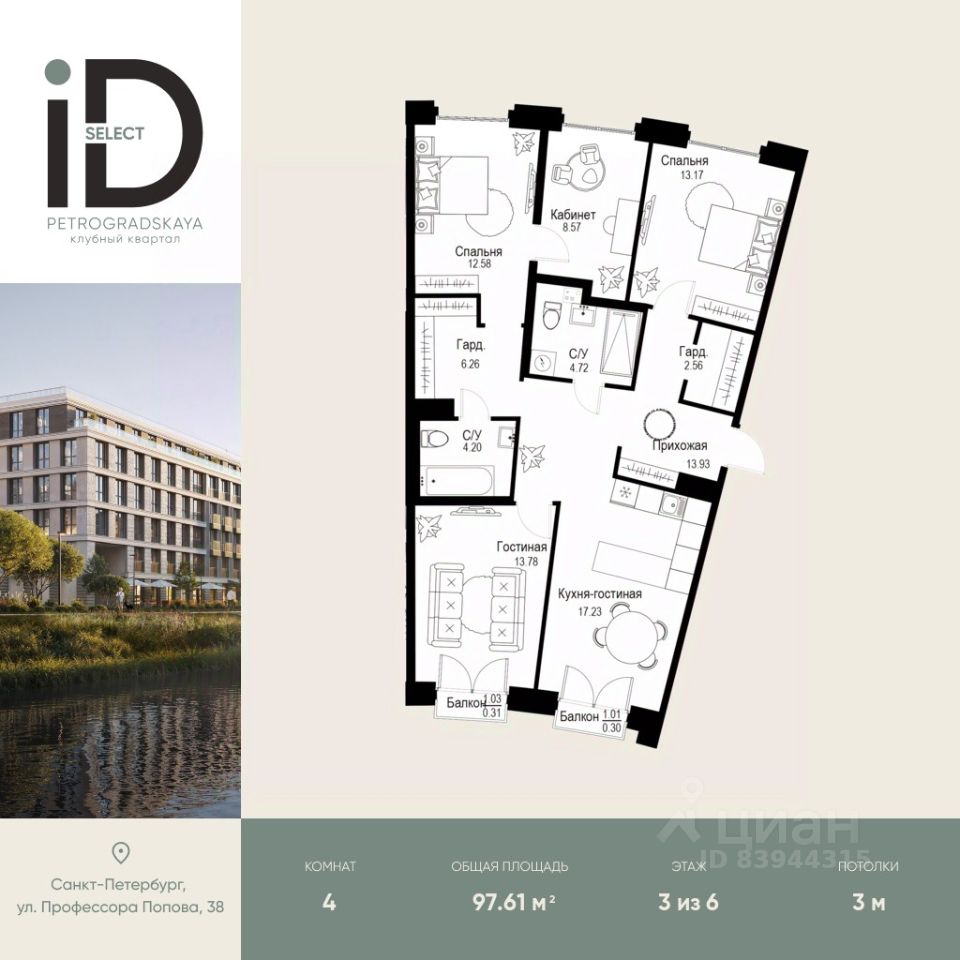 Клубный квартал iD Petrogradskaya на ул. Профессора Попова, 38 объединяет современную архитектуру, удобные планировки и развитую инфраструктуру, предлагая комфортную жизнь в престижном районе Санкт-Петербурга. Из квартир открываются виды на Иоанновский монастырь и реку Карповку. В шаговой доступности три станции метро: "Петроградская", "Чкаловская" и "Чёрная речка". 3-метровые потолки и эксклюзивные планировки создают атмосферу простора и уюта. Внутреннее пространство квартала включает благоустроенные дворы, курдонёры и подземный паркинг. Квартиры площадью от 20 до 136 м² с кухнями-гостиными до 40 м² и террасами с панорамными видами сдаются без отделки, оставляя свободу для индивидуальных интерьерных решений. Рядом ведущие вузы (ЛЭТИ, ИТМО), школы, детские сады, спортивные клубы, Ботанический и Вяземский сады. Удобный выезд на ЗСД, 10 минут до аэропорта Пулково. На территории квартала - кафе, рестораны, медицинские центры, детские и спортивные площадки.