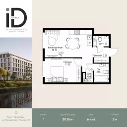 Общая площадь39,18 м²