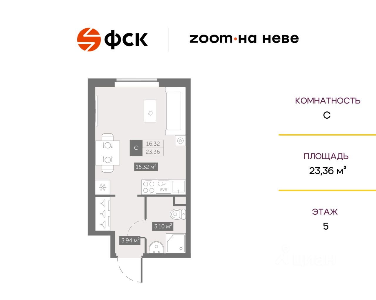 Цена со скидкой до 30% в прямой продаже от застройщика — только в этом месяце. При покупке апартаментов - паркинг за полцены. На все апартаменты действует беспроцентная рассрочка. Купите на распродаже! Покупка недвижимости в Zoom на Неве сейчас со скидкой до 30% позволит через 2 года получить доход до 6 300 000 руб. Роскошные виды на Неву. Апартамент-студия в комплексе класса бизнес-лайт Zoom на Неве на 5-м этаже. Общая площадь 23,36. Без отделки.