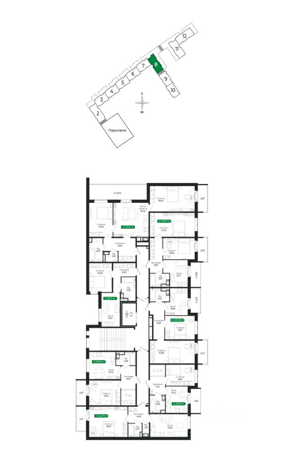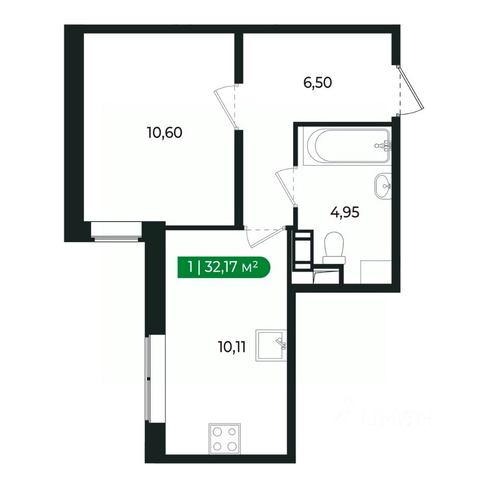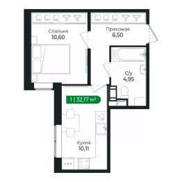 Напрямую продаётся уютная 1-комнатная квартира 224 общей площадью 32,17 м2 во II очереди в жилом комплексе Сертолово Парк от застройщика ГК Алгоритм.