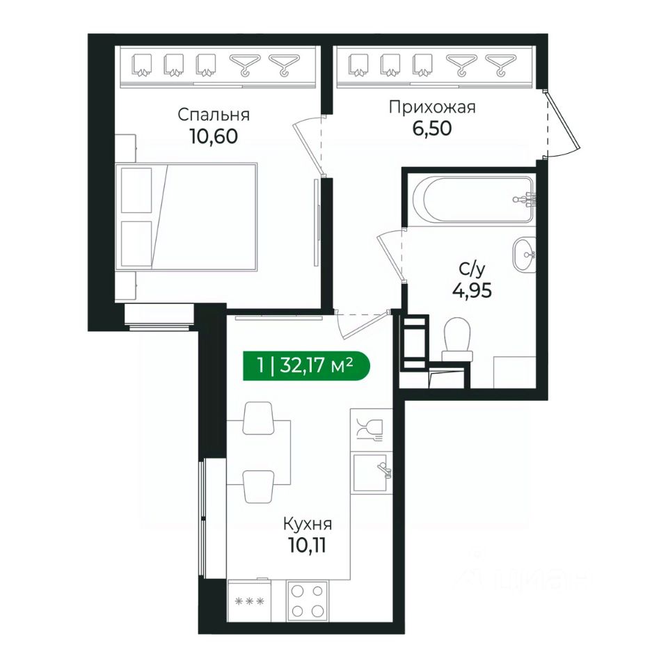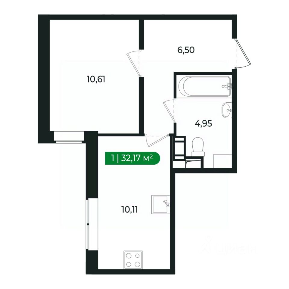 Напрямую продаётся уютная 1-комнатная квартира 238 общей площадью 32,17 м2 во II очереди в жилом комплексе Сертолово Парк от застройщика ГК Алгоритм.