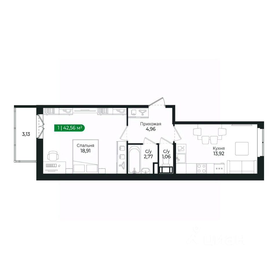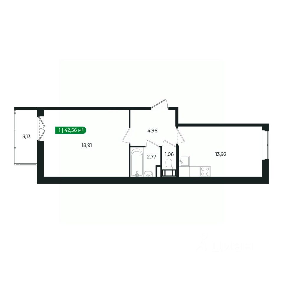 Напрямую продаётся уютная 1-комнатная квартира 243 общей площадью 42,56 м2 во II очереди в жилом комплексе Сертолово Парк от застройщика ГК Алгоритм.