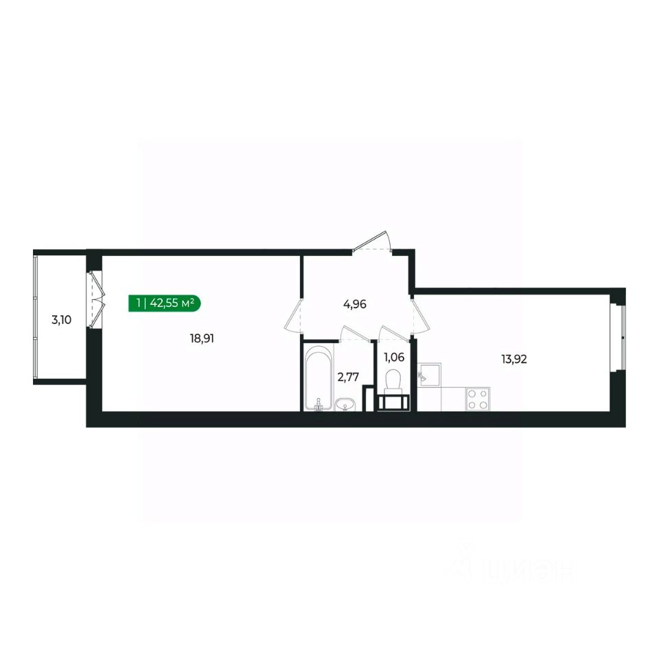 Напрямую продаётся уютная 1-комнатная квартира 250 общей площадью 42,55 м2 во II очереди в жилом комплексе Сертолово Парк от застройщика ГК Алгоритм.