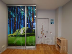 Вторая комната (детская) площадью 16.8 м2 лаконична по меблировке: шкаф-купе и система хранения по периметру окна.