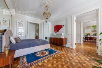 Эта квартира — живая историческая шкатулка. Ее стены помнят эпоху с 1910-х по 1980-е годы. Печи, изысканная лепнина, массивные двери, дубовый паркет — всё это чудом сохранилось до наших дней.