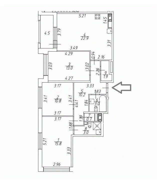 Продаётся Видовая трехкомнатная квартира с огромной кухней-гостиной 23 кв.м.