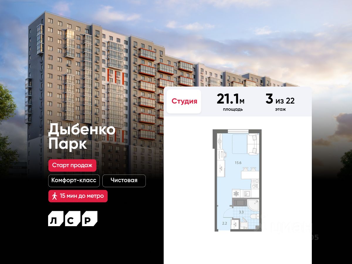 Продается студия в ЖК "Дыбенко Парк" на 3 этаже. Общая площадь составляет 21.10 кв. м. Квартира с чистовой отделкой. Жилой комплекс располагается по адресу Санкт-Петербург, проспект Товарищеский.