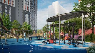 Возле дома появится отдельно стоящий 9-этажный паркинг на 331 машиноместо. Двор жилого комплекса будет закрытым. Центральное место благоустроенной территории займет детская зона, которая будет отделена от зоны отдыха и спортивной площадки зелеными насаждениями.