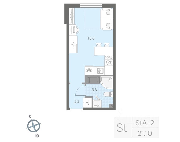 Продается студия в ЖК "Дыбенко Парк" на 4 этаже. Общая площадь составляет 21.10 кв. м. Квартира с чистовой отделкой. Жилой комплекс располагается по адресу Санкт-Петербург, проспект Товарищеский.