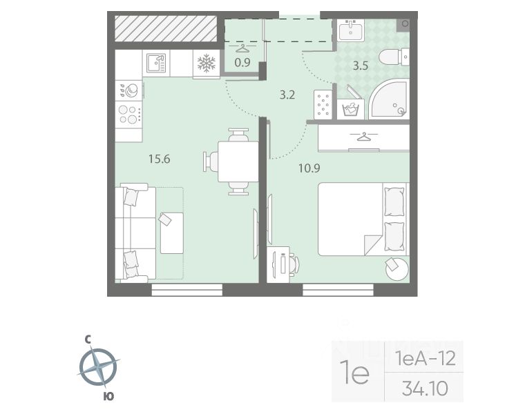 Продается 1-комнатная квартира в ЖК "Дыбенко Парк" на 4 этаже. Общая площадь составляет 34.10 кв. м. Квартира с чистовой отделкой. Жилой комплекс располагается по адресу Санкт-Петербург, проспект Товарищеский.