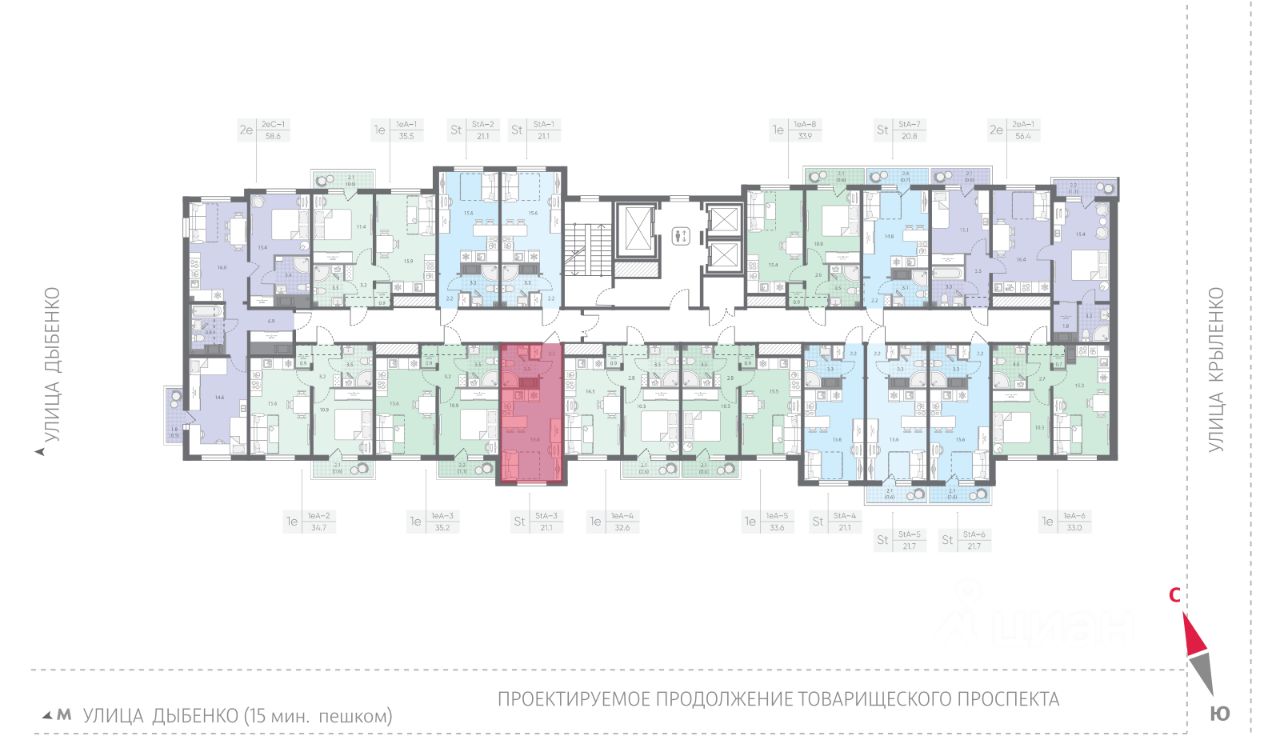 Продается студия в ЖК "Дыбенко Парк" на 21 этаже. Общая площадь составляет 21.10 кв. м. Квартира с чистовой отделкой. Жилой комплекс располагается по адресу Санкт-Петербург, проспект Товарищеский.