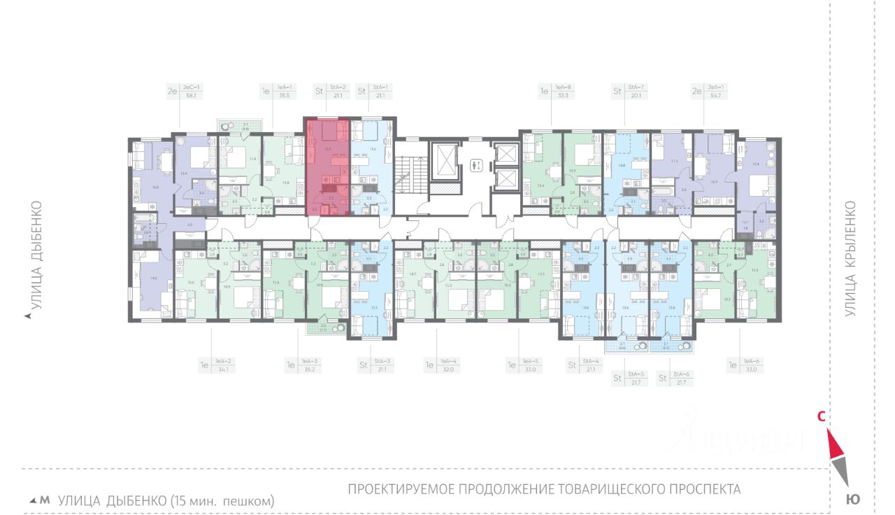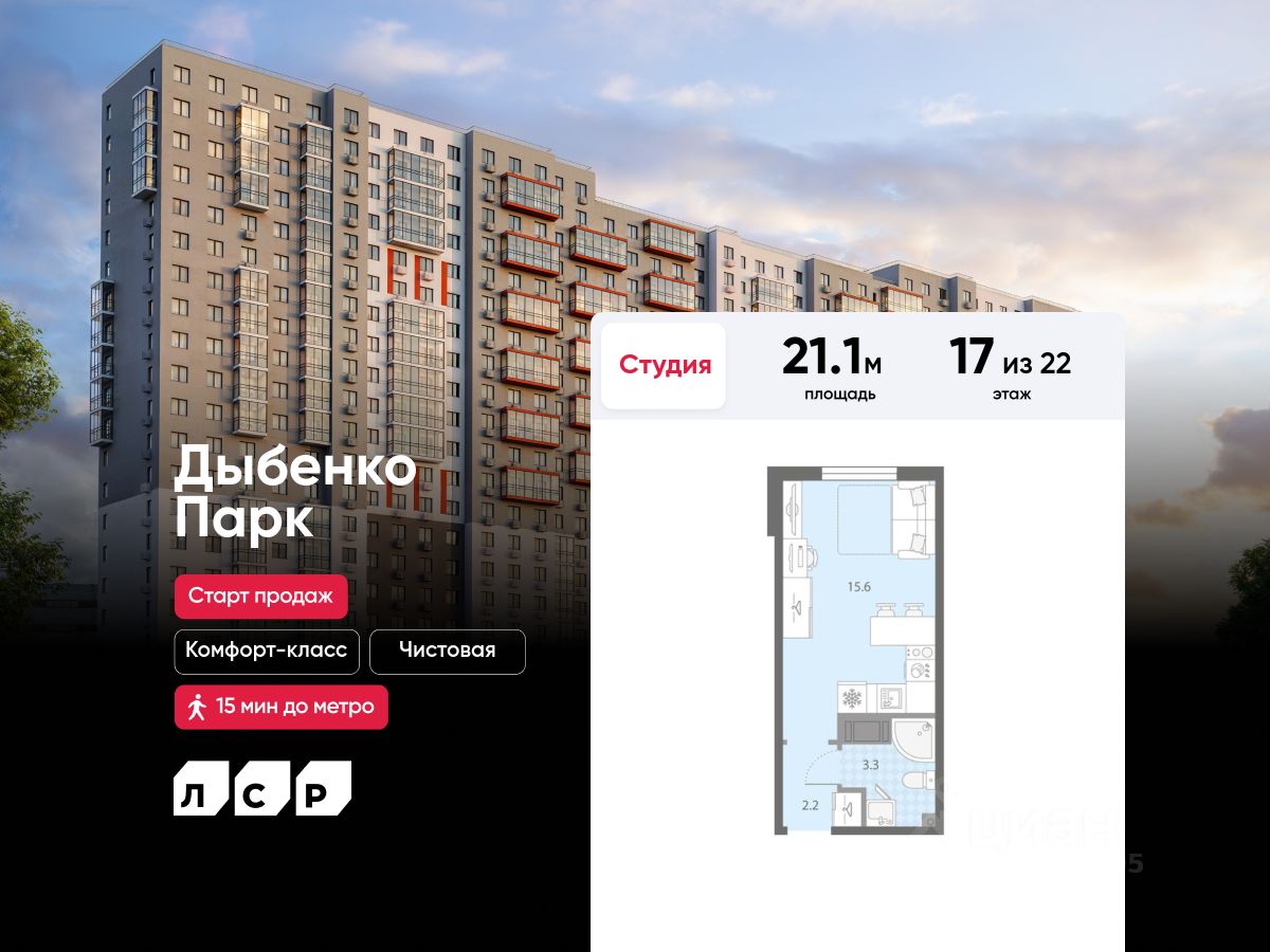 Продается студия в ЖК "Дыбенко Парк" на 17 этаже. Общая площадь составляет 21.10 кв. м. Квартира с чистовой отделкой. Жилой комплекс располагается по адресу Санкт-Петербург, проспект Товарищеский.