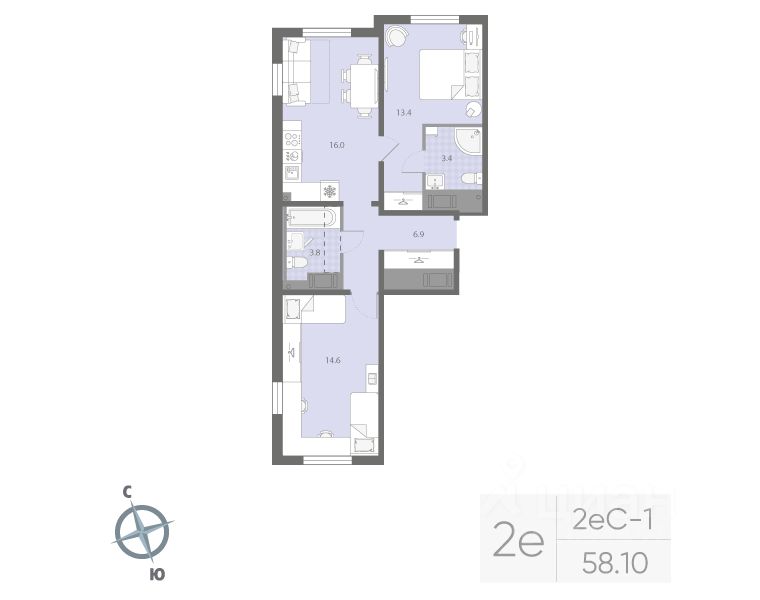 Продается 2-комнатная квартира в ЖК "Дыбенко Парк" на 17 этаже. Общая площадь составляет 58.10 кв. м. Квартира с чистовой отделкой. Жилой комплекс располагается по адресу Санкт-Петербург, проспект Товарищеский.